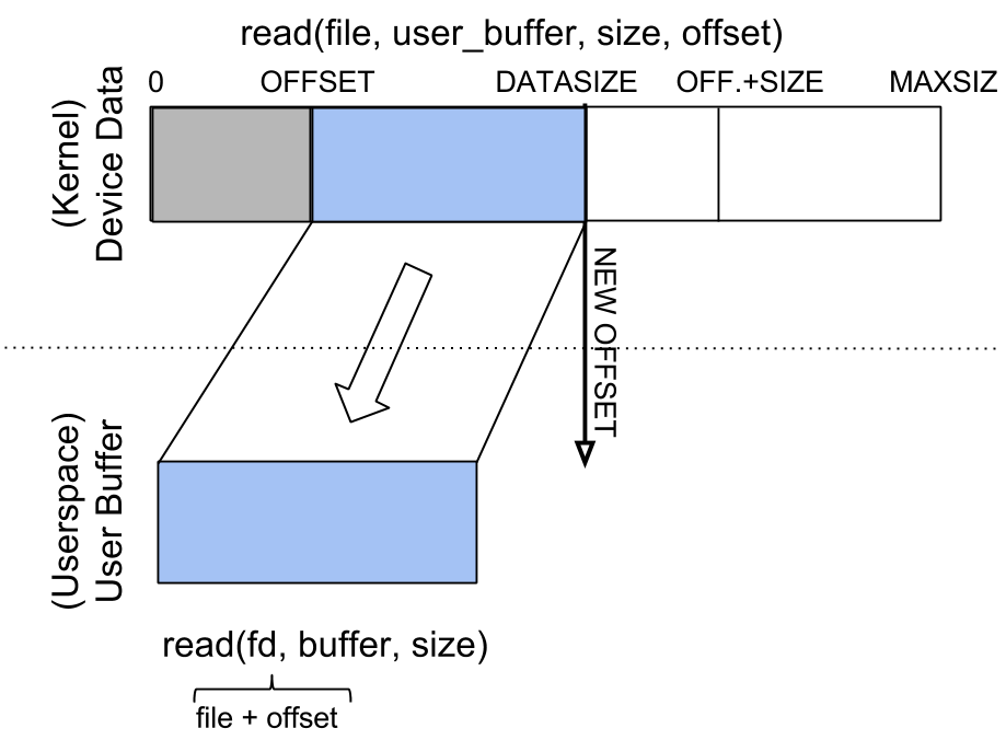 Ignore the offset parameter at this time. You can assume that the driver buffer is large enough. You do not need to check the validity of the write function size argument.